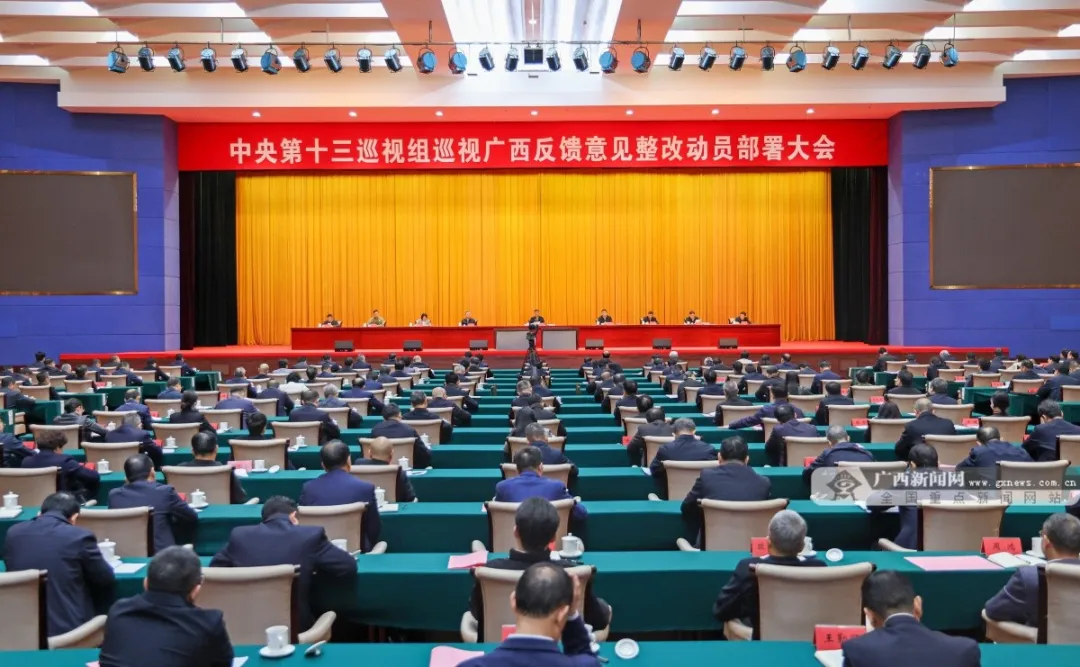 陈刚指出,根据党中央统一部署,中央第十三巡视组于7月17日至9月29日进驻我区,11月27日向我区进行现场反馈,客观肯定了广西工作,严肃指出了存在问题,明确提出了整改要求,充分体现了以习近平同志为核心的党中央对广西工作的高度重视,对自治区党委班子和全区广大干部的深切关怀。抓好巡视整改工作,是讲政治铸忠诚,切实践行“两个确立”“两个维护”的重要检验,是树正气转作风,统筹建好政治生态、自然生态“两个生态”的迫切要求,是补短板强弱项,加快推动“十五五”时期高质量发展、奋力谱写中国式现代化广西篇章的重大契机。全区各级各部门要始终在思想上政治上行动上同以习近平同志为核心的党中央保持高度一致,切实增强抓好巡视整改的政治自觉思想自觉行动自觉,严格对标对表,认真校准偏差,不折不扣整改到位,以巡视整改实际成效坚定拥护“两个确立”、坚决做到“两个维护”。要把统筹建好政治生态、自然生态“两个生态”放到更加重要的位置,树牢正确政绩观,着力铲除腐败滋生的土壤和条件,坚决肃清流毒,推动全面从严治党不断向纵深发展,让风清气正的政治生态和山清水秀的自然生态交相辉映、相得益彰。要牢牢把握高质量发展这个首要任务和构建新发展格局这个战略任务,立足广西实际,发挥自身优势,更好服务和融入全国发展大局,推动新时代壮美广西建设全局的战略任务取得重大突破。